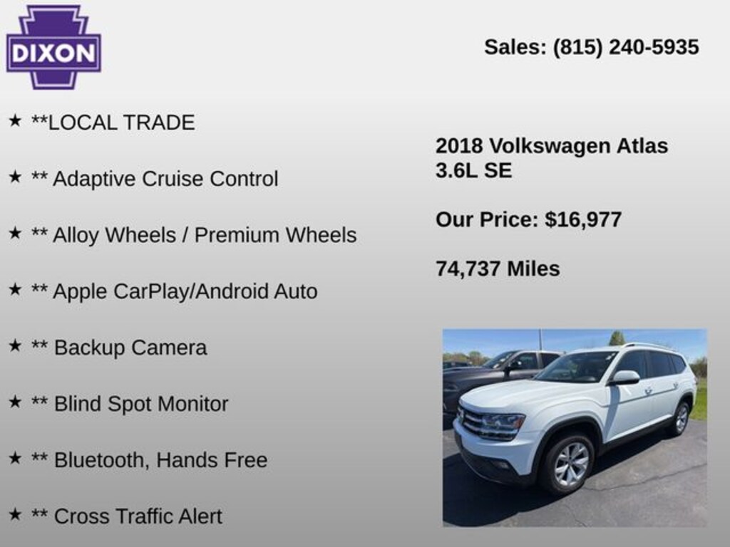 Recent Arrival! Odometer is 37358 miles below market average! Pure White 2018 Volkswagen Atlas 4D Sport Utility 3.6L VR6 8-Speed Automatic with Tiptronic AWD 3.6L V6 SE w/Technology